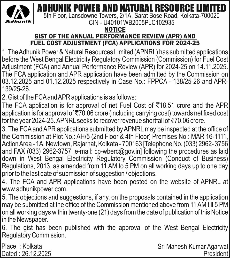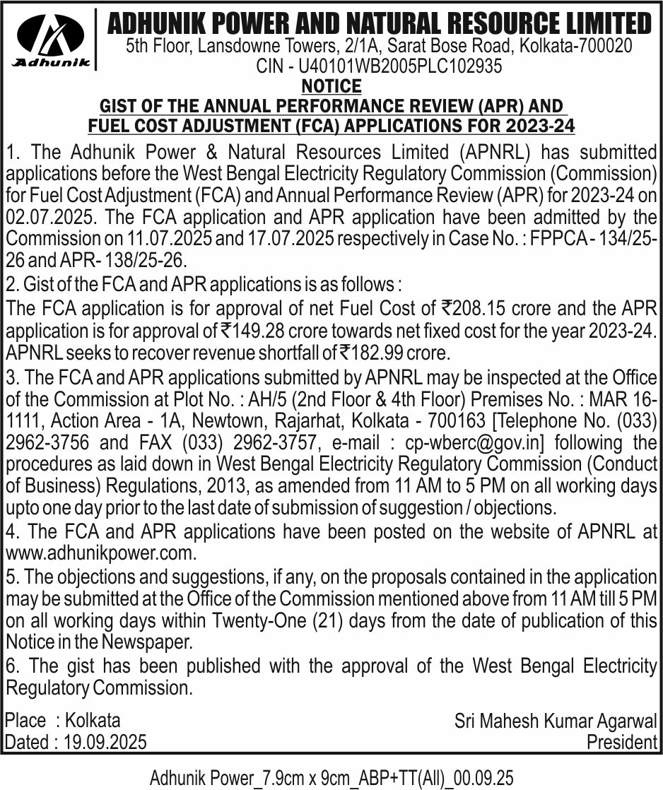Adhunik Power & Natural Resources Ltd | Village: Padampur|Behind: P.G.C.I.L. Substation| Saraikela – Kharswan| Jharkhand -832402